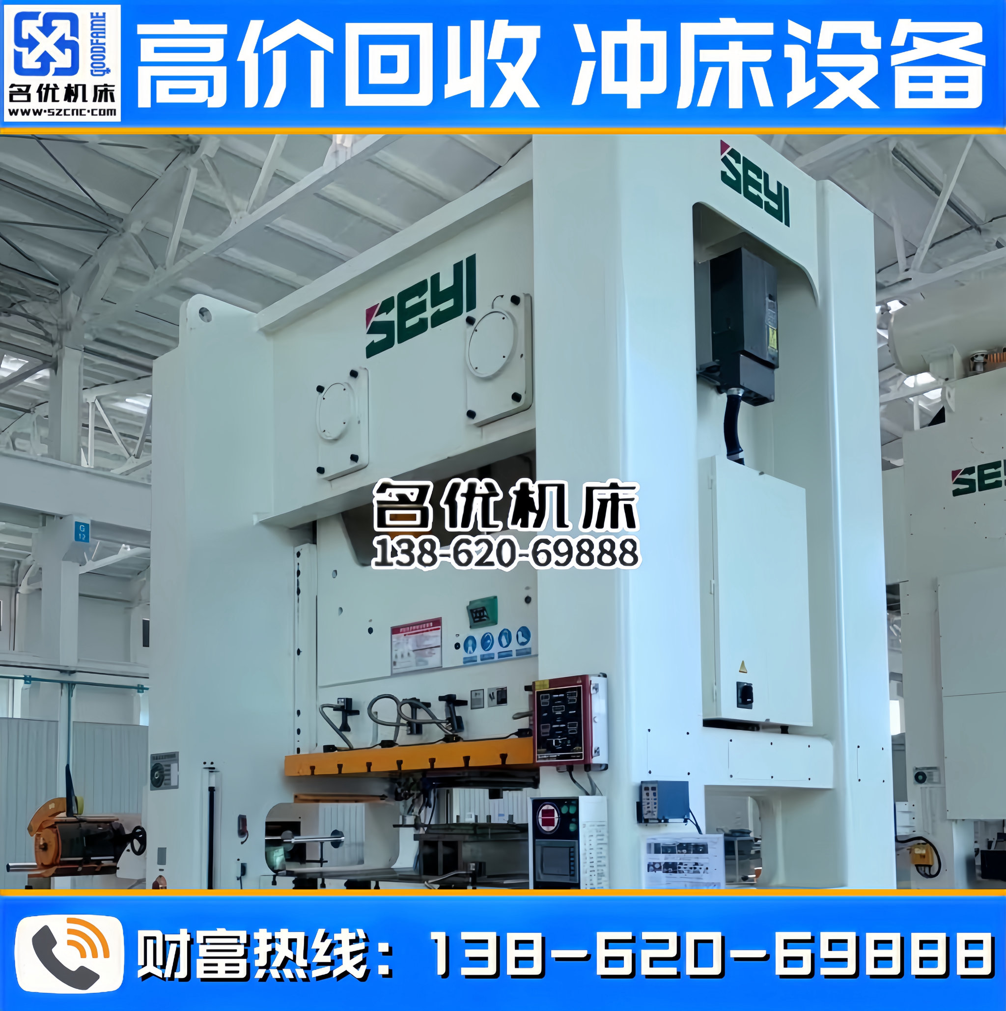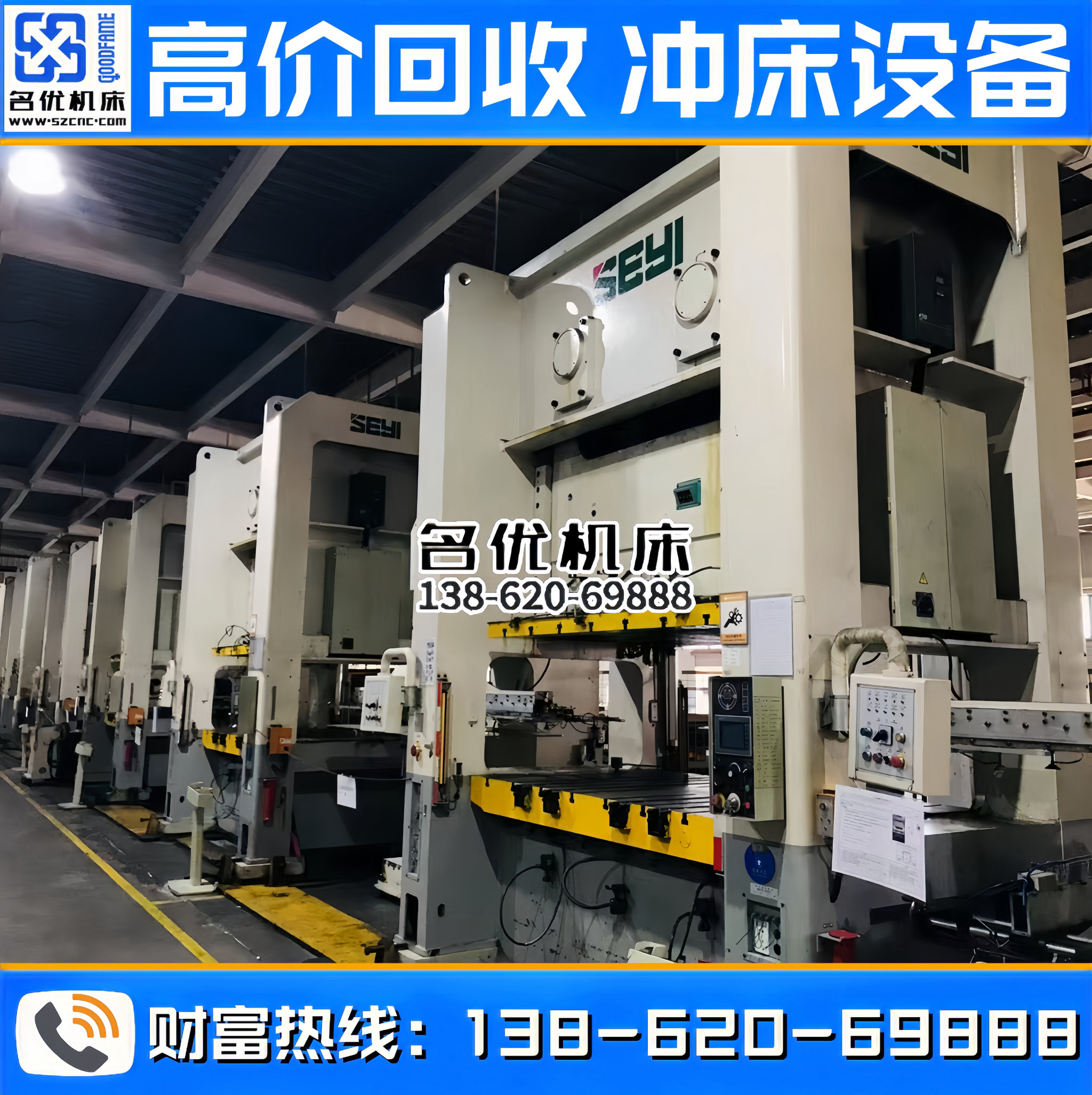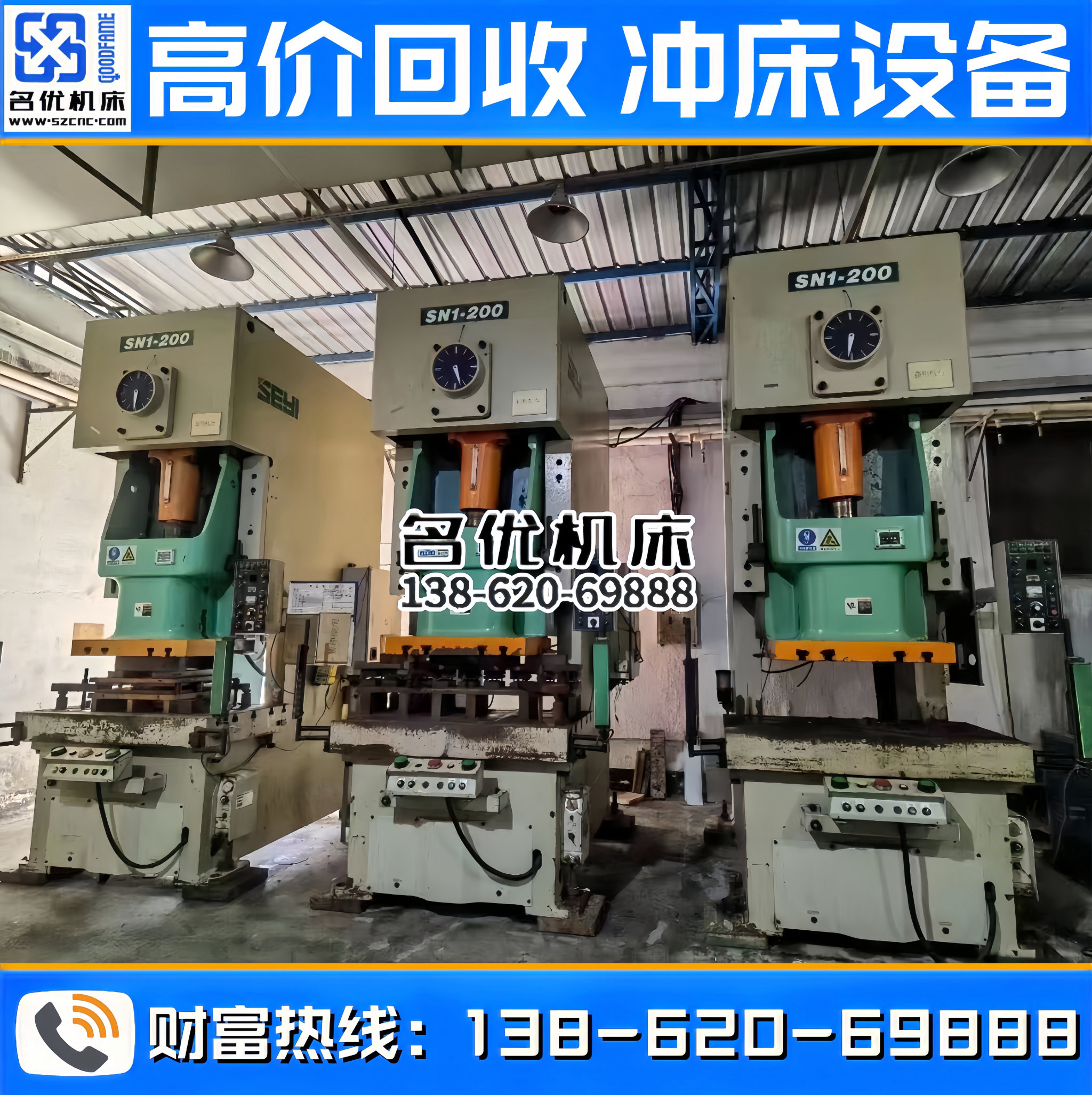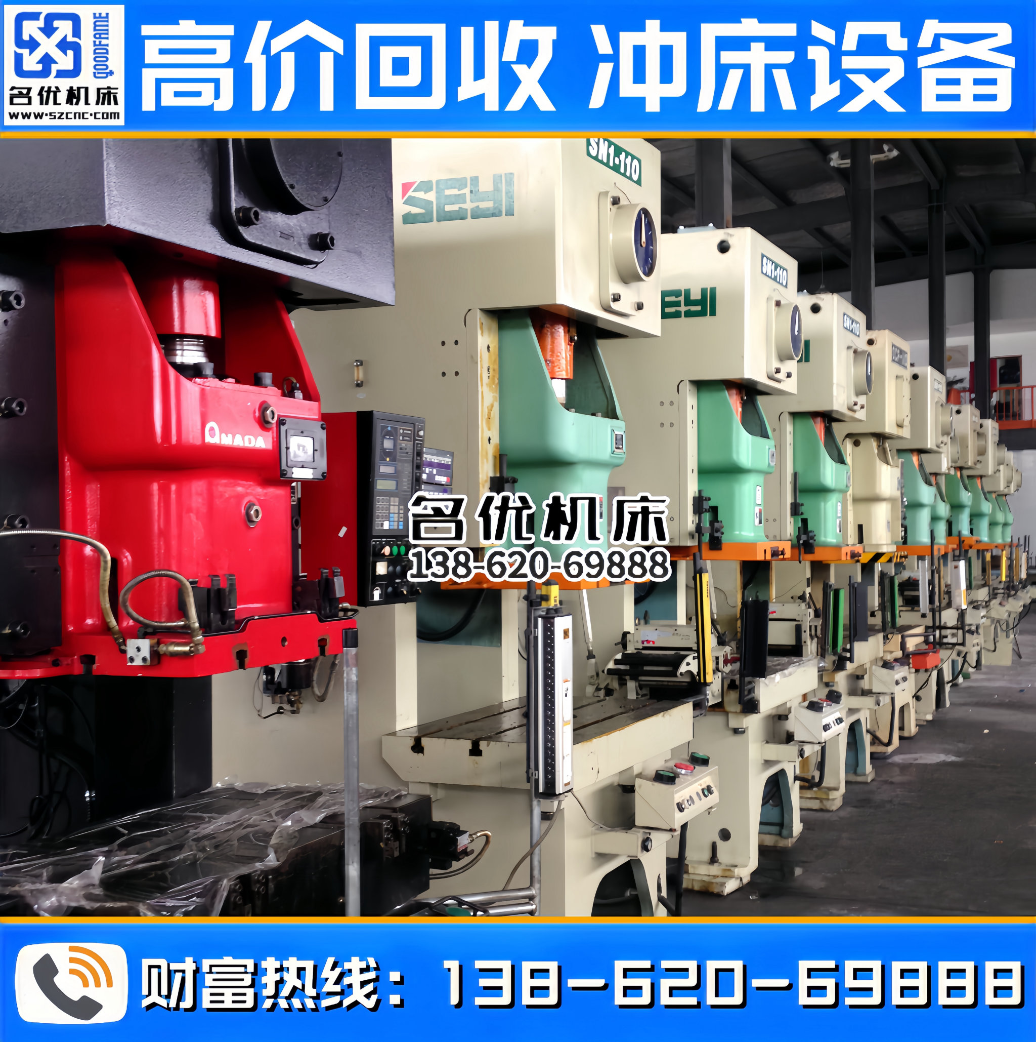 全国高价回收冲床设备,专业回收、合作共赢!联系电话 : 138-620-69888