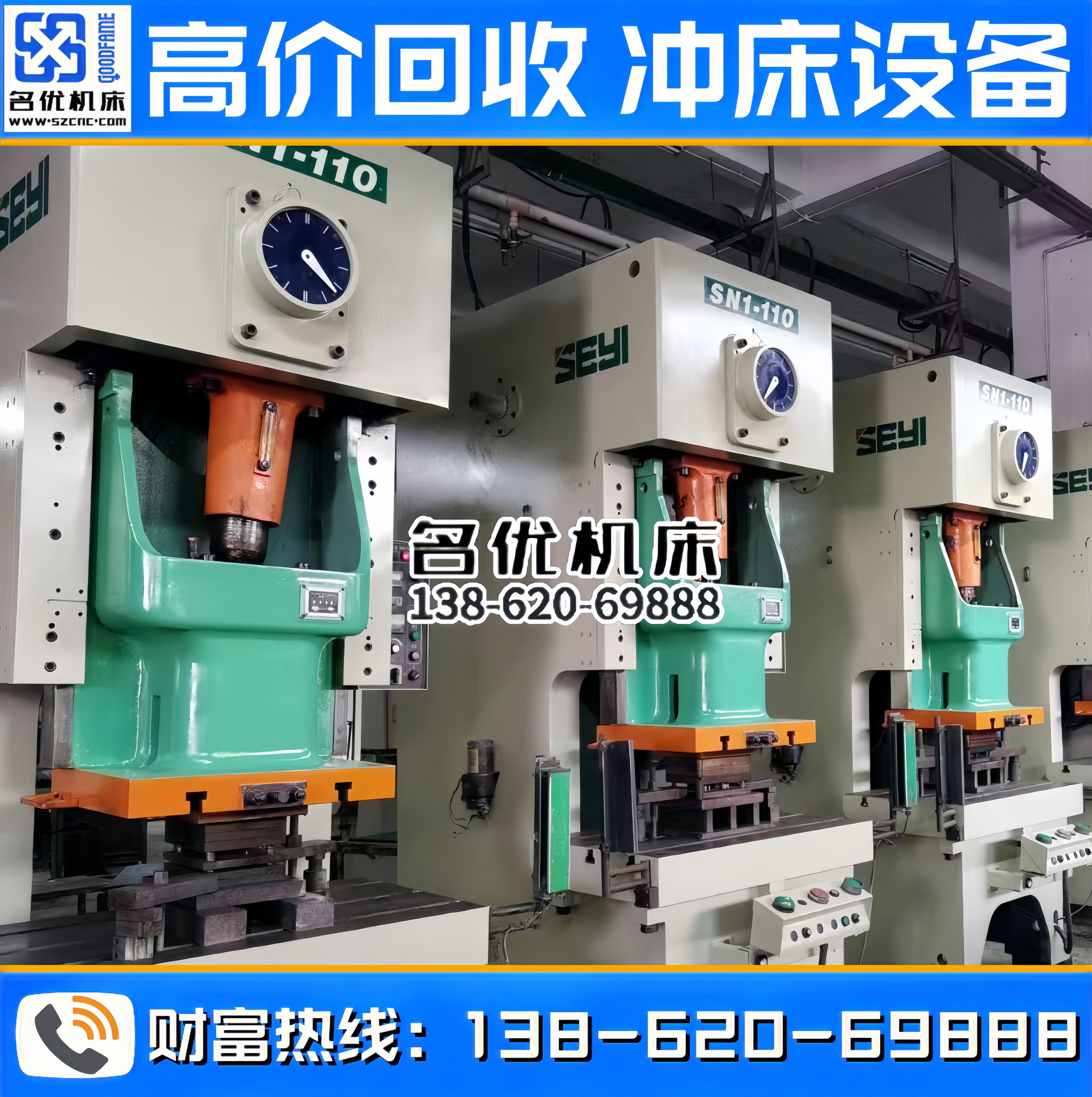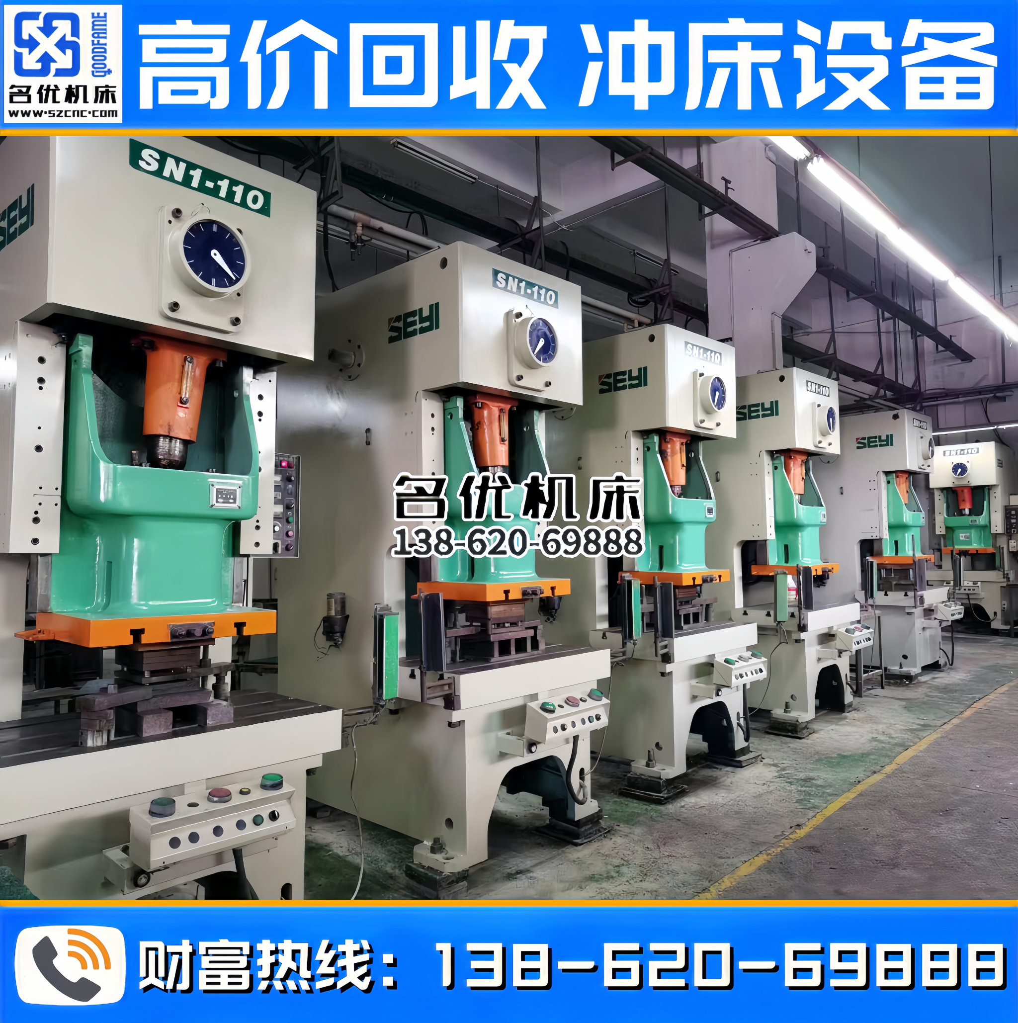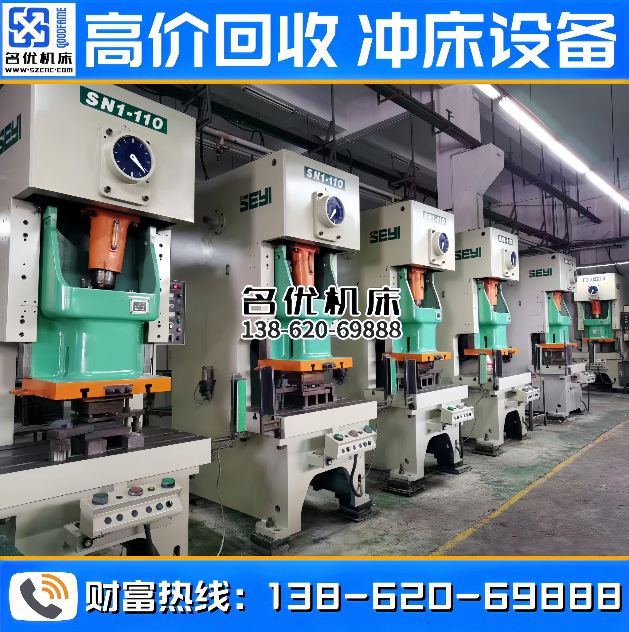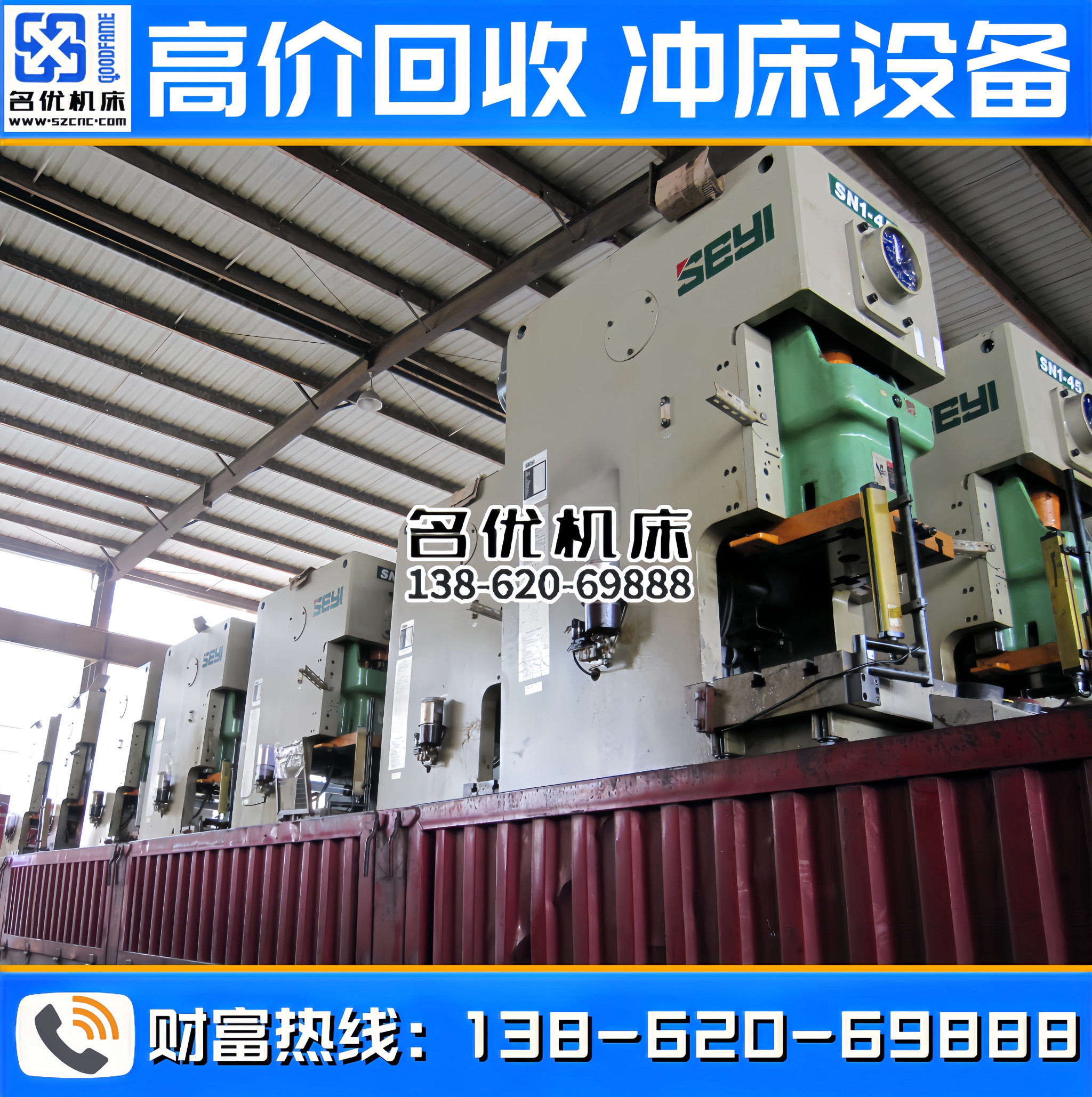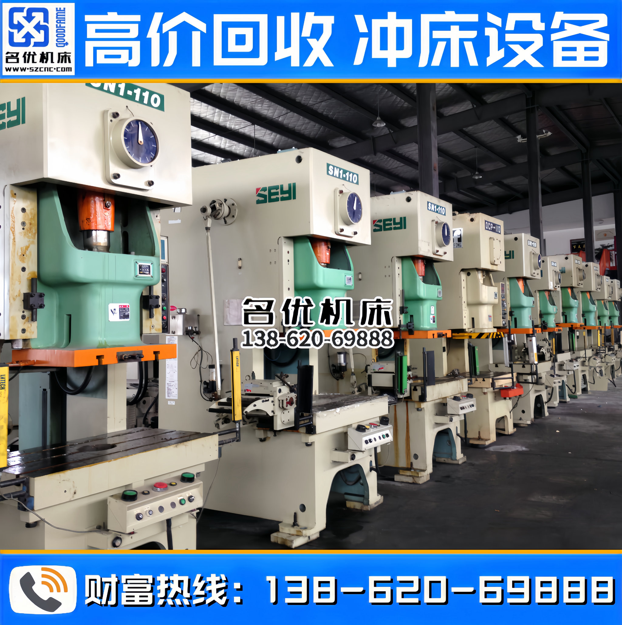 全国高价回收冲床设备,专业回收、合作共赢!联系电话 : 138-620-69888
