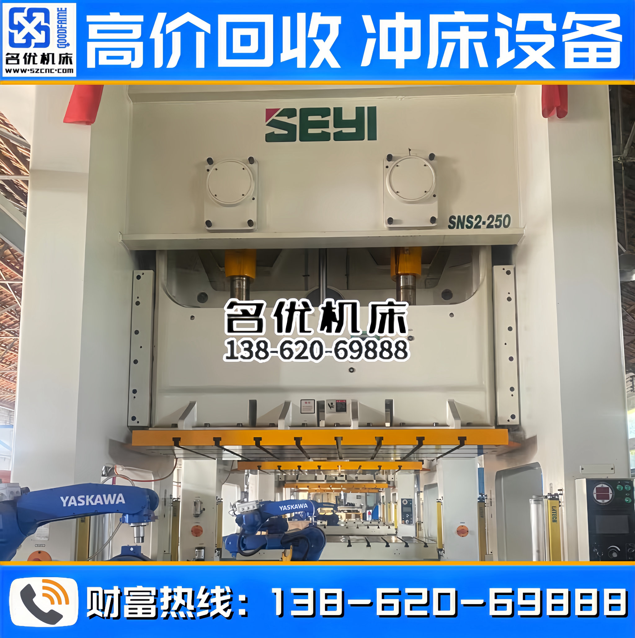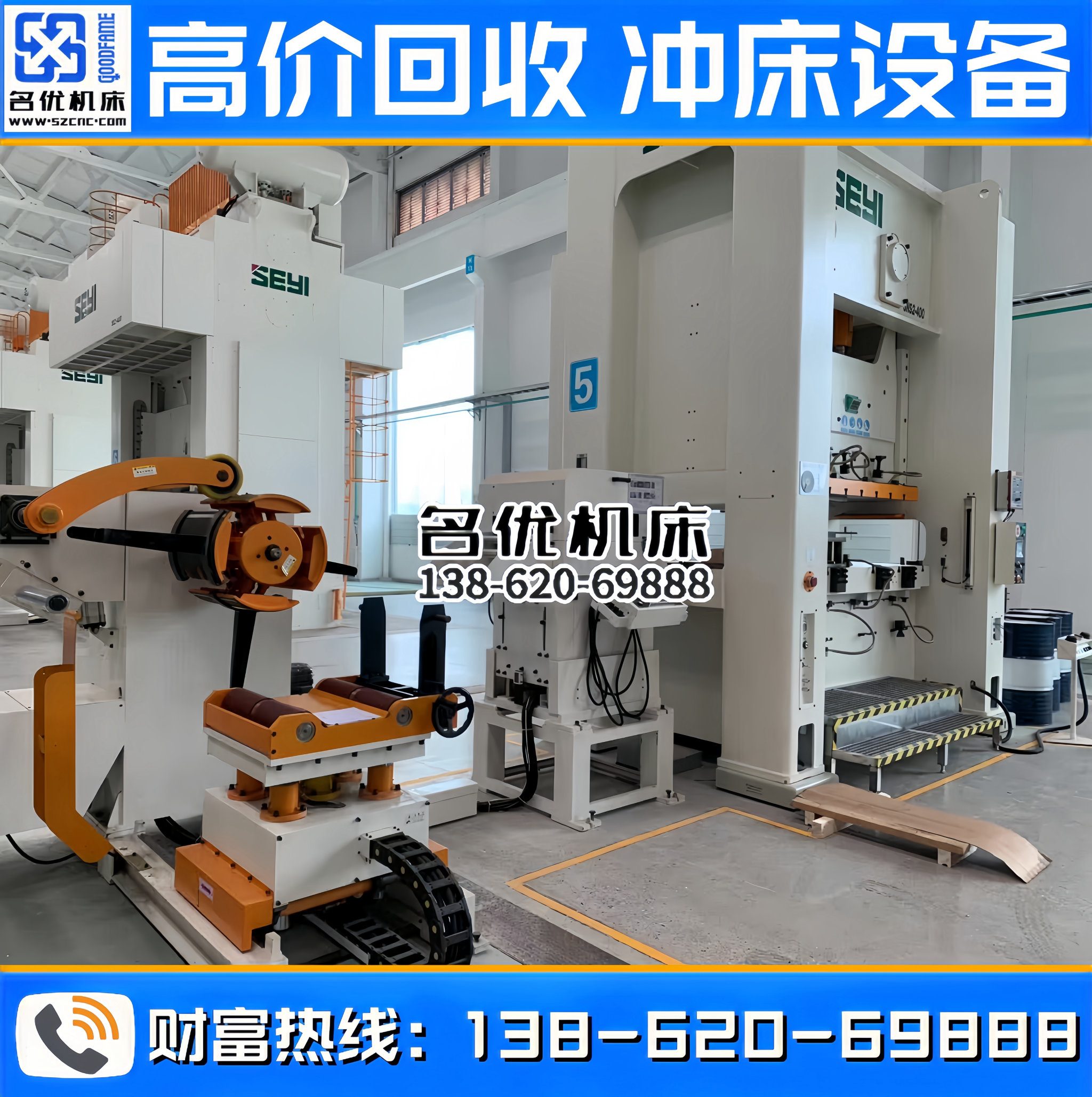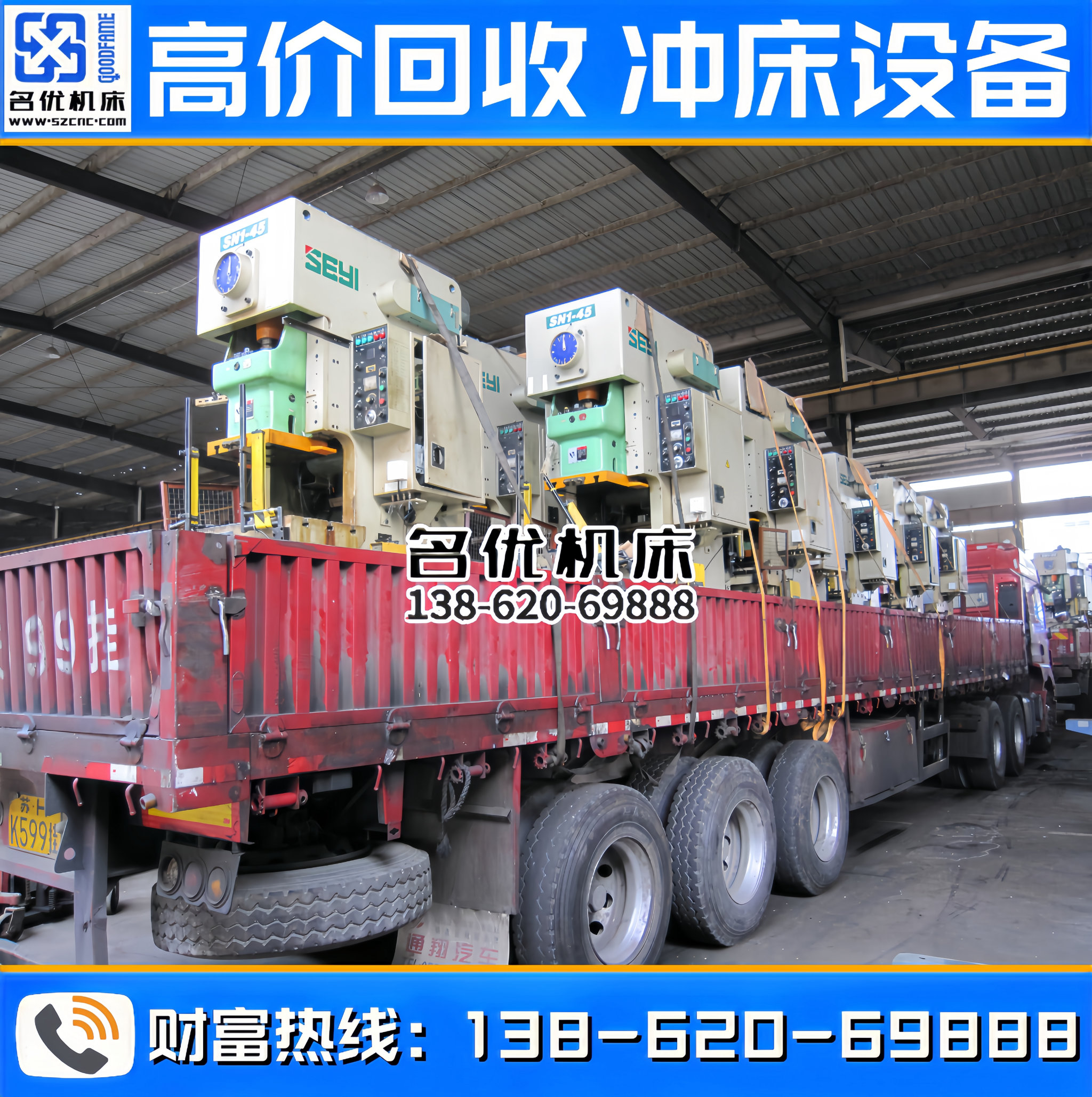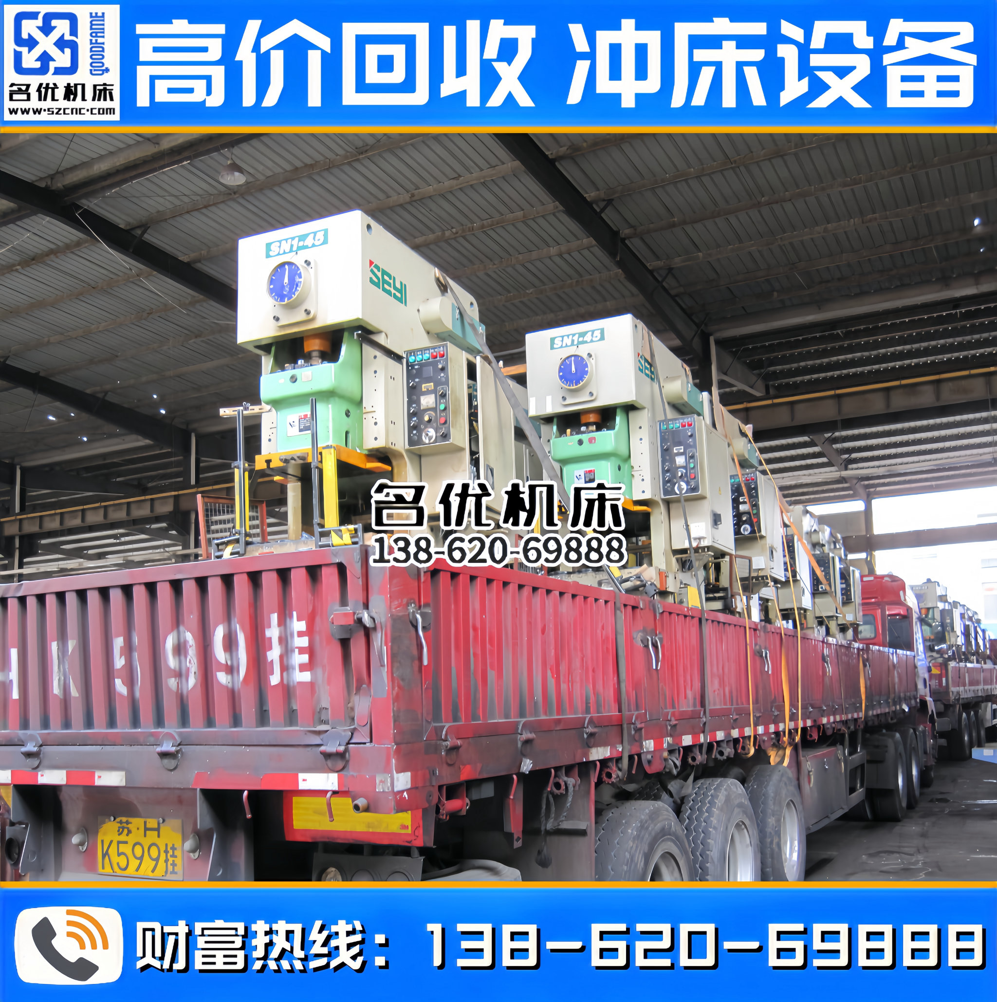 全国高价回收冲床设备,专业回收、合作共赢!联系电话 : 138-620-69888